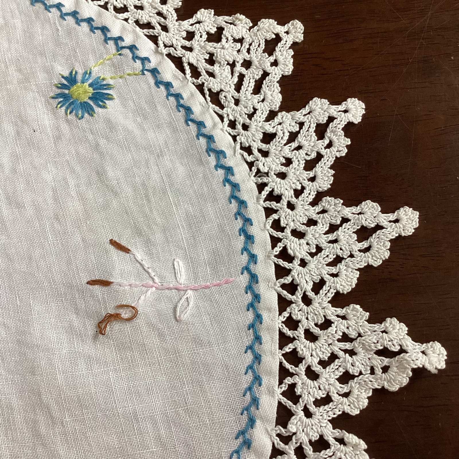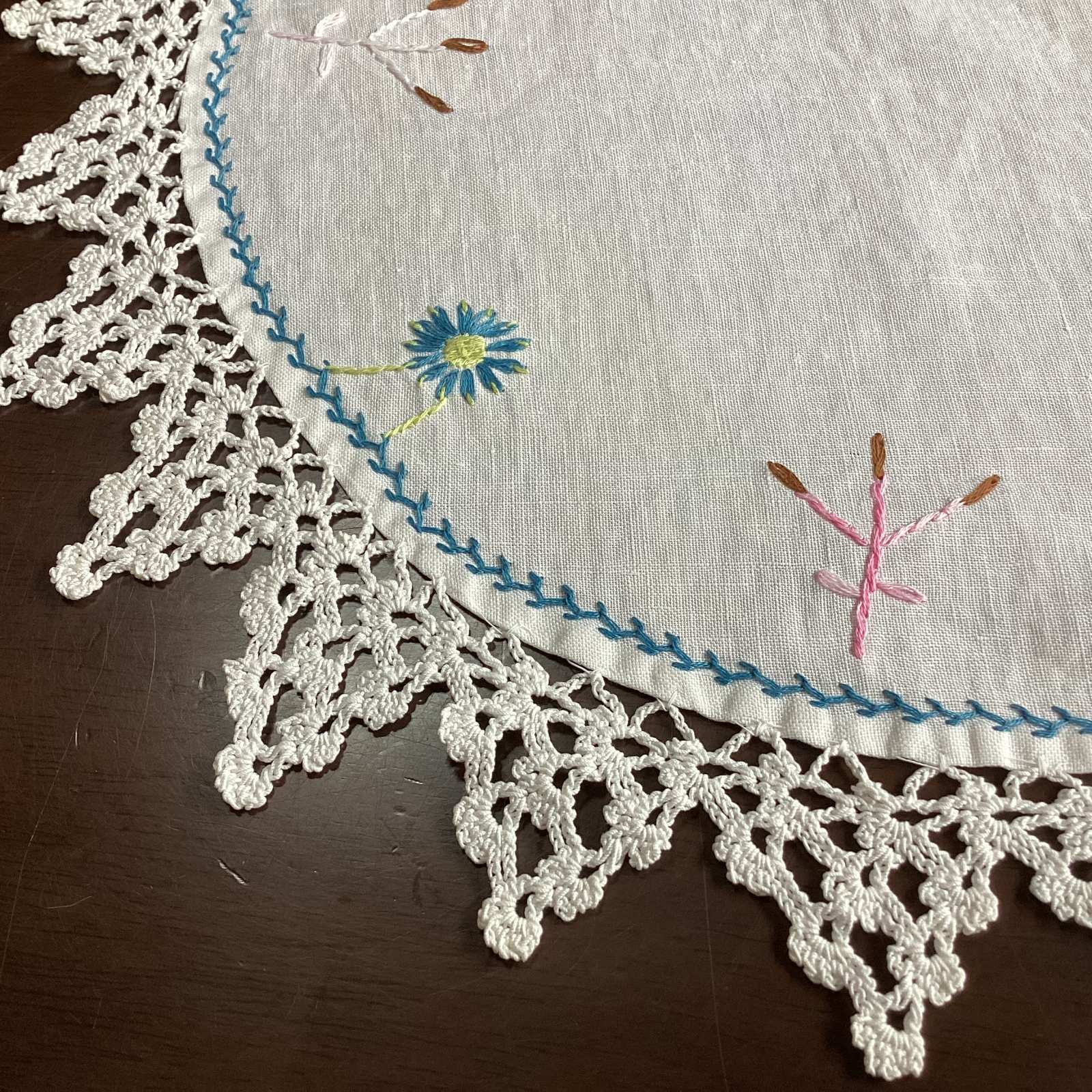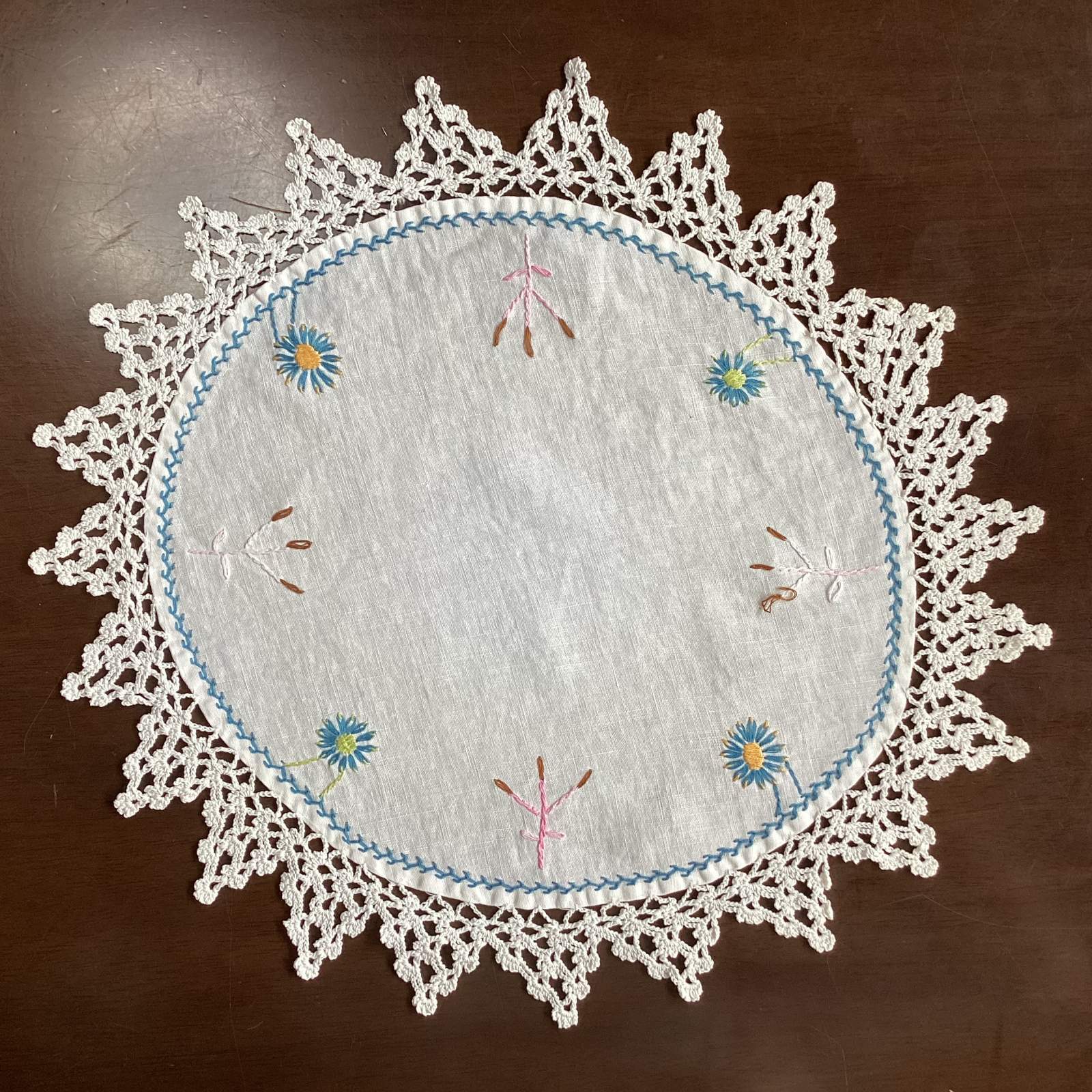 手刺繍の大判ドイリー[AL8976]