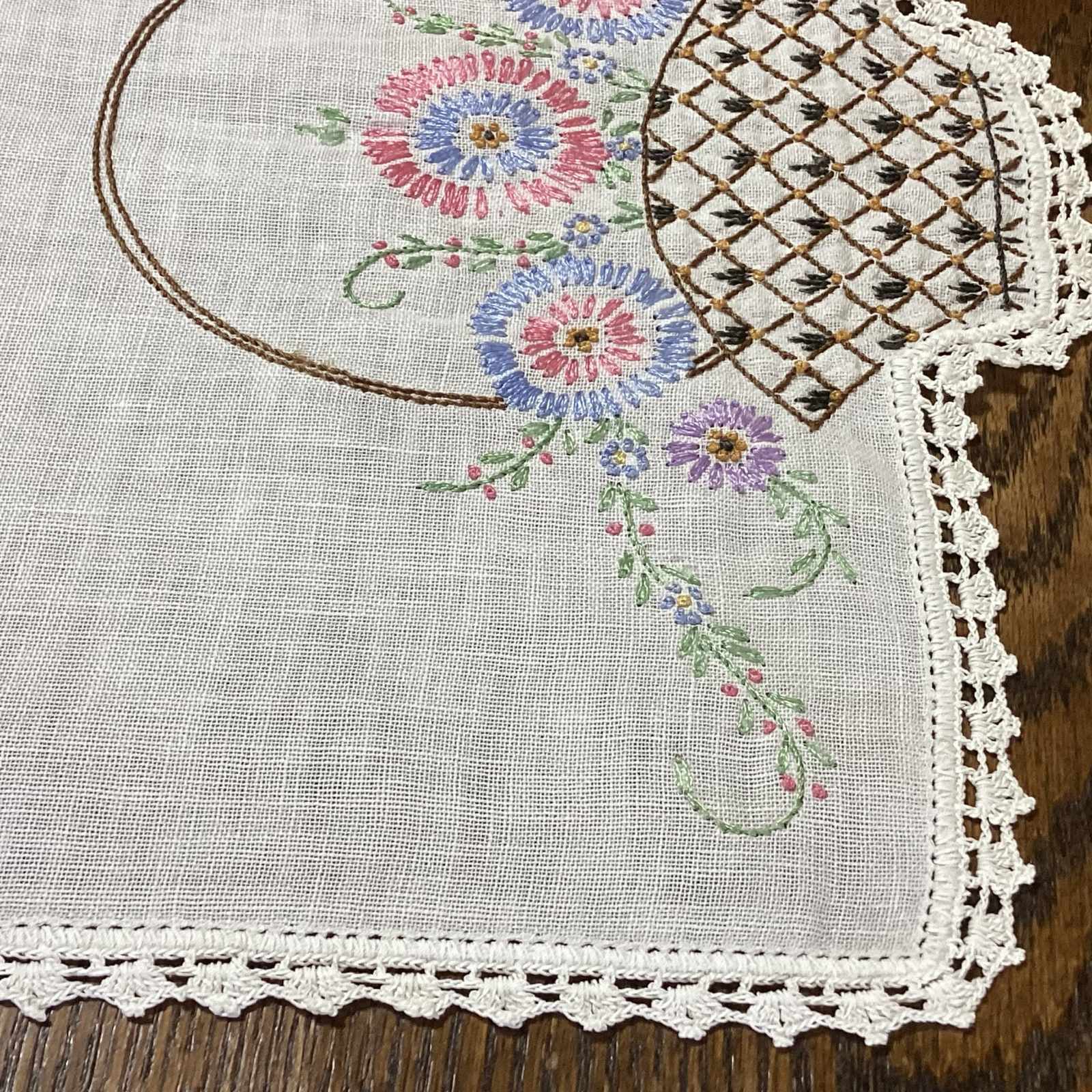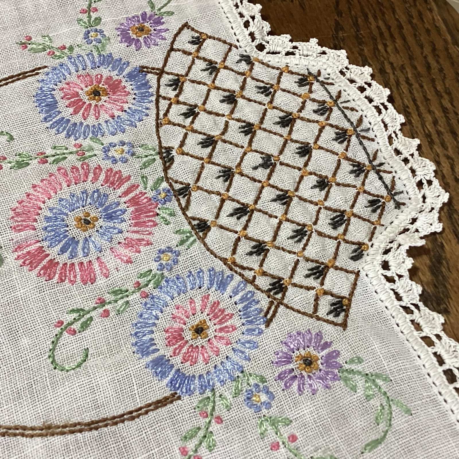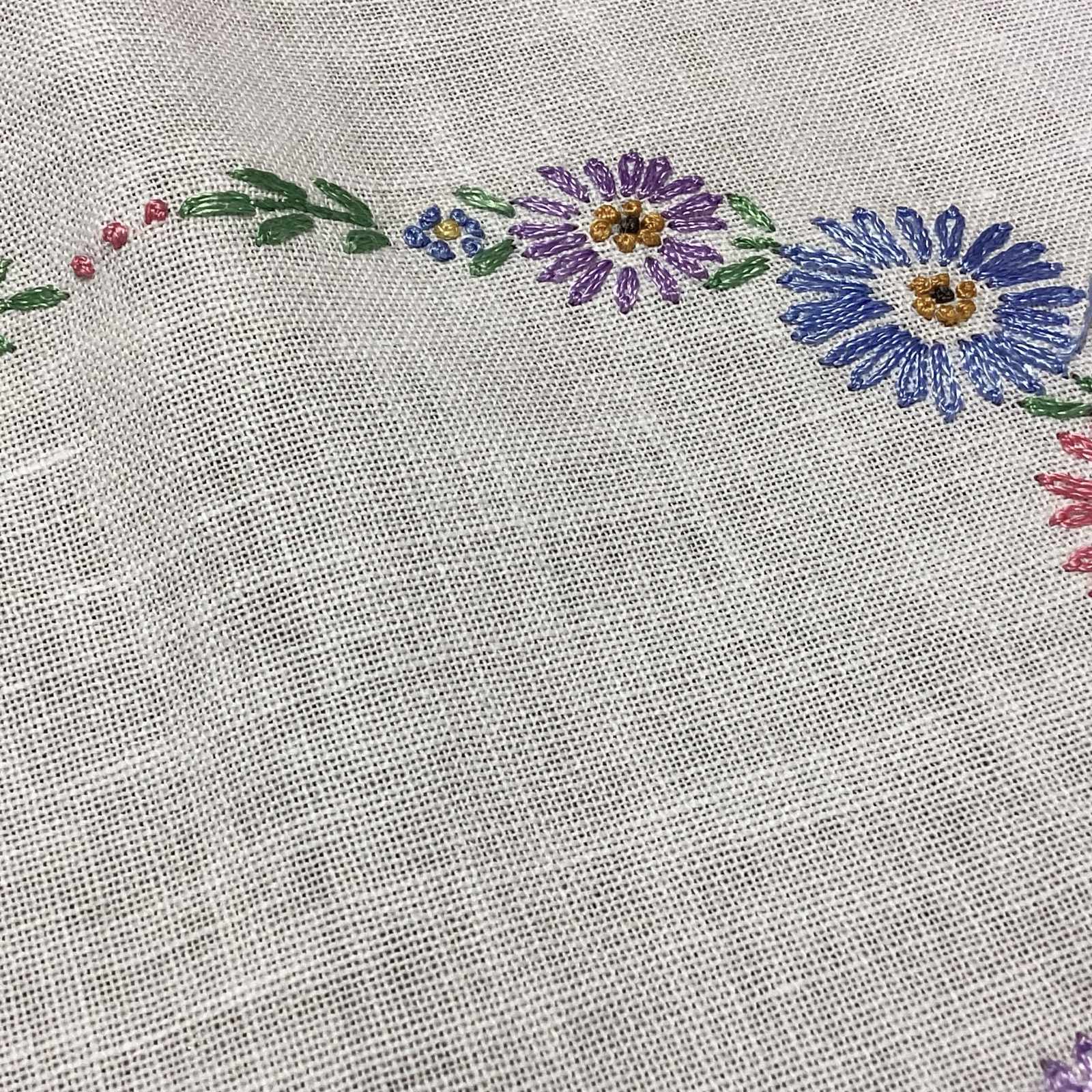 花カゴを手刺繍された可愛いカフェカーテンです。