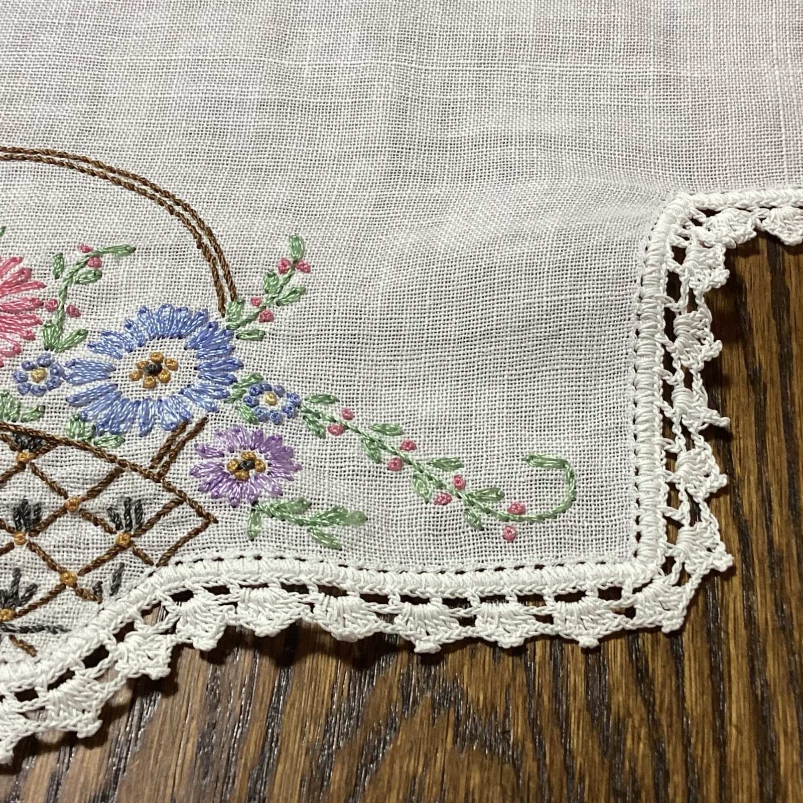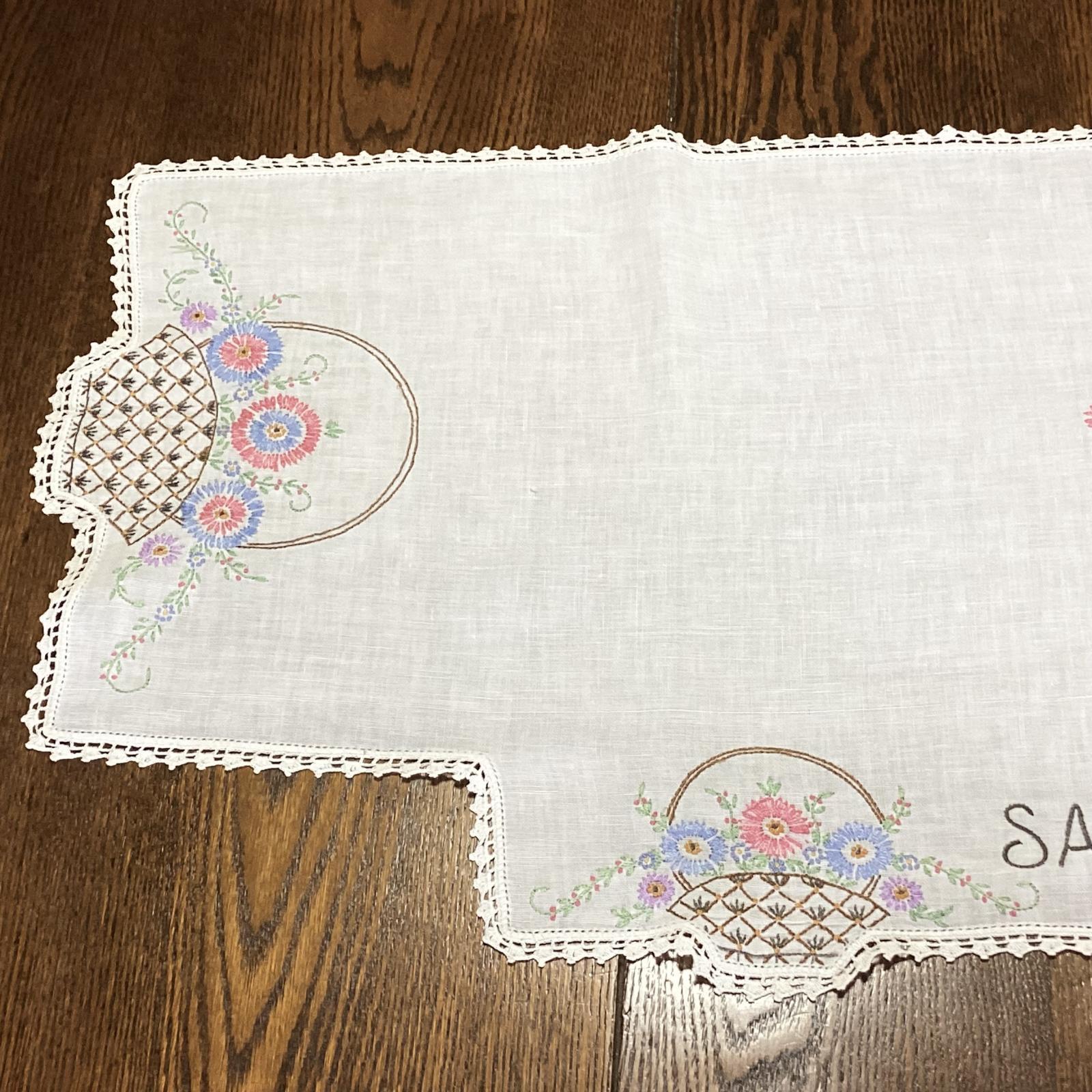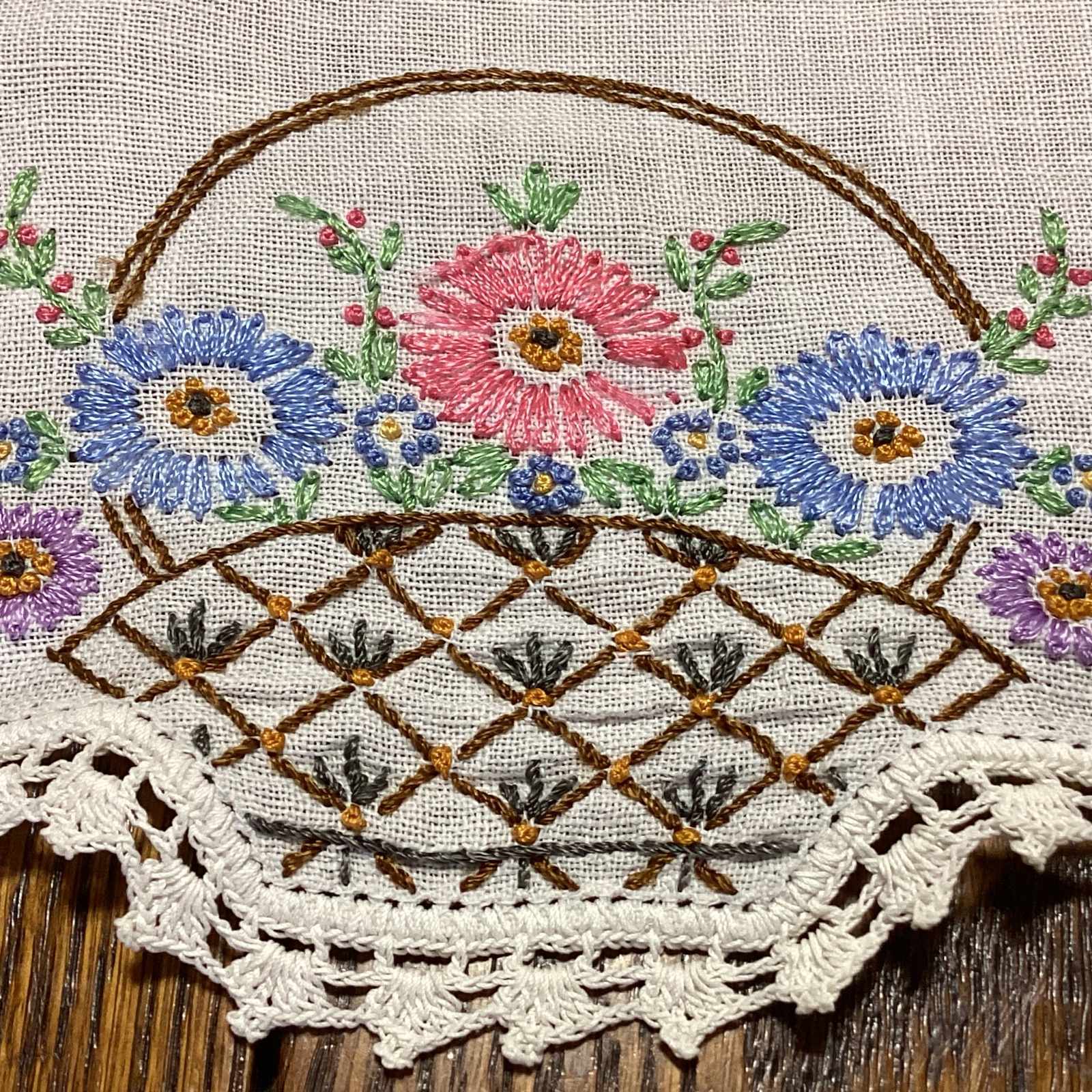 花カゴを手刺繍された可愛いカフェカーテンです。