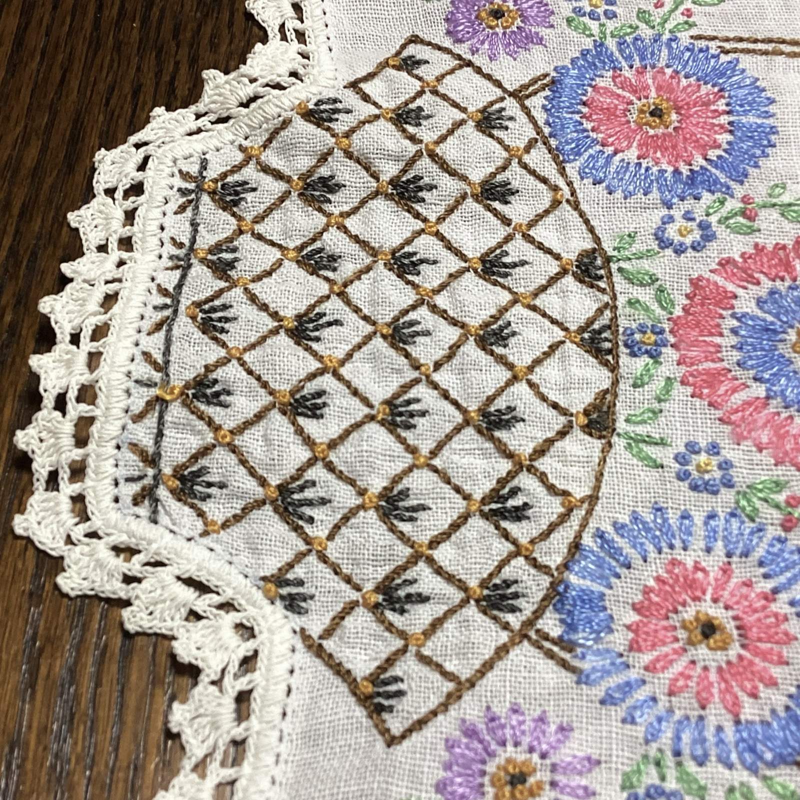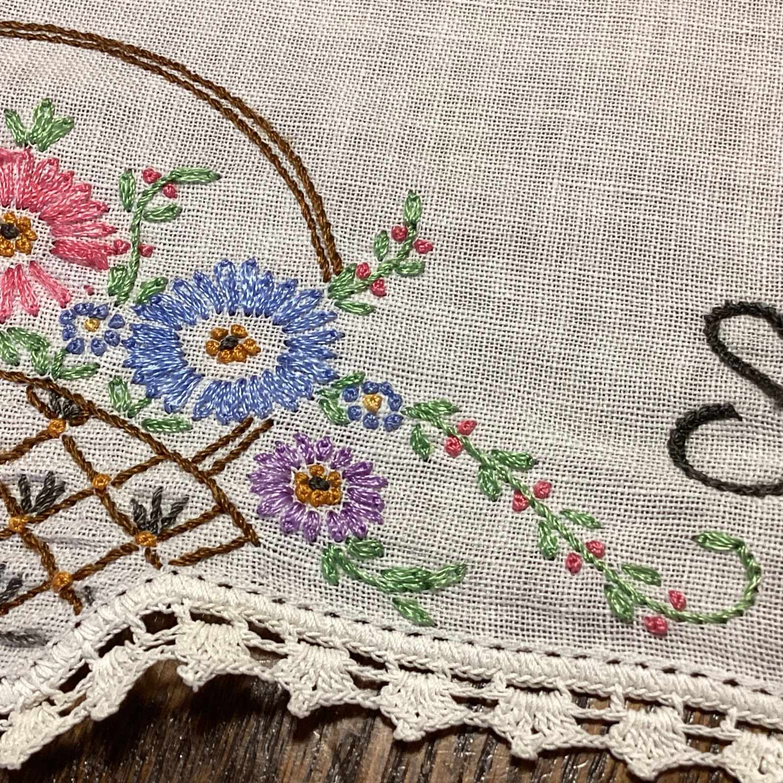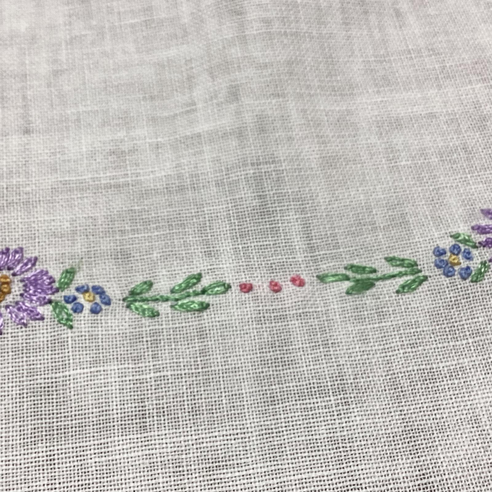 大きなダメージはありませんが、1ヶ所アルファベット文字の刺繍糸がほつれていたり、2ヶ所お花の刺繍糸がほつれている部分があります。