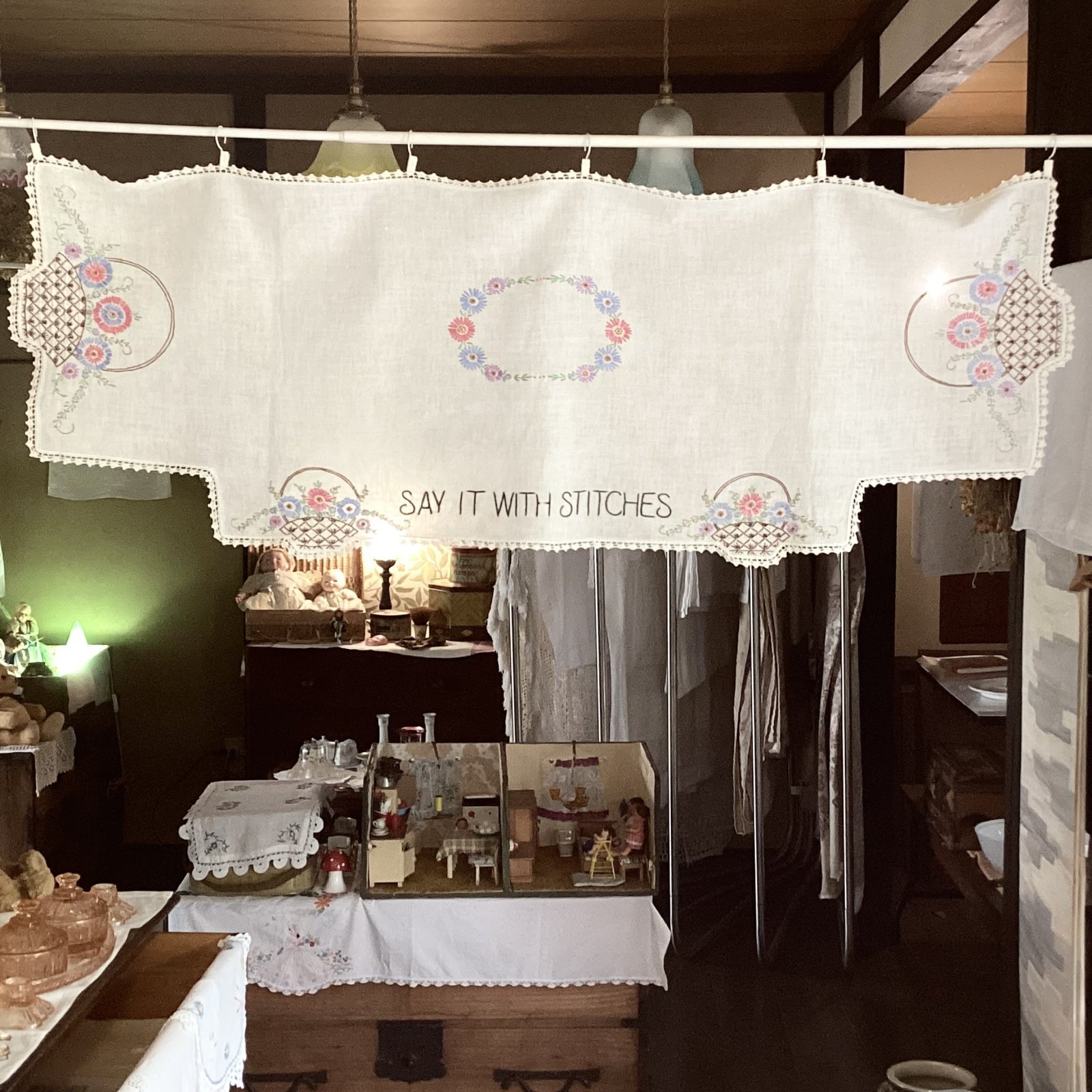 ホーム レース & コットン  (アンティーク) 手刺繍のカフェカーテン