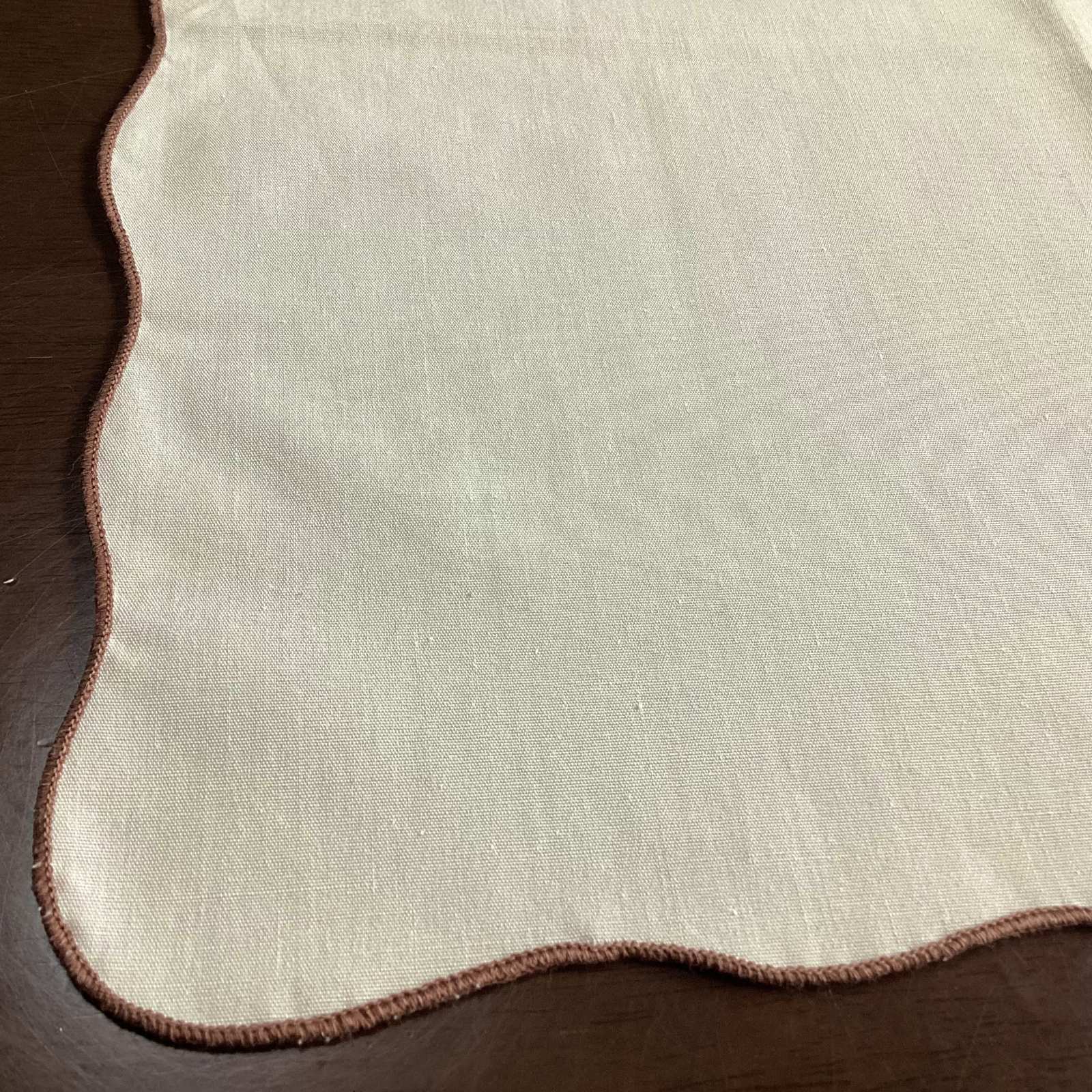 生地はクリーム色、茶色の糸で縁取りをされており暖かみを感じます。